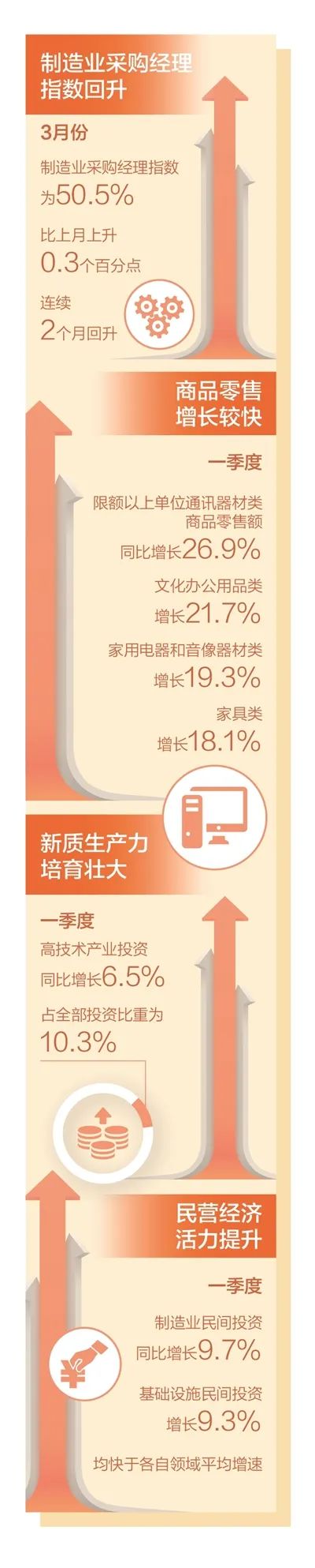 从细分数据不难看出,开年以来,新质生产力正在培育壮大,高质量发展取得新成效。